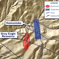 The Homestake target lies on the Nevada side of the Gold Springs project and is situated on the northern boundary of the Gold Springs property, 700 metres east of the Grey Eagle resource.