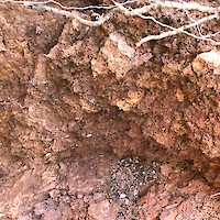 Mineralization at the Horseshoe Extension is characterized by banded quartz-calcite veins and hydrothermal breccia zones that are hosted in silicified andesite. Most of the target is covered by a layer of post-mineral gravel which ranges in thickness from a thin cover to over 10 meters.