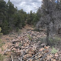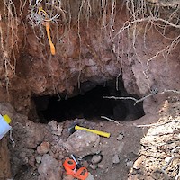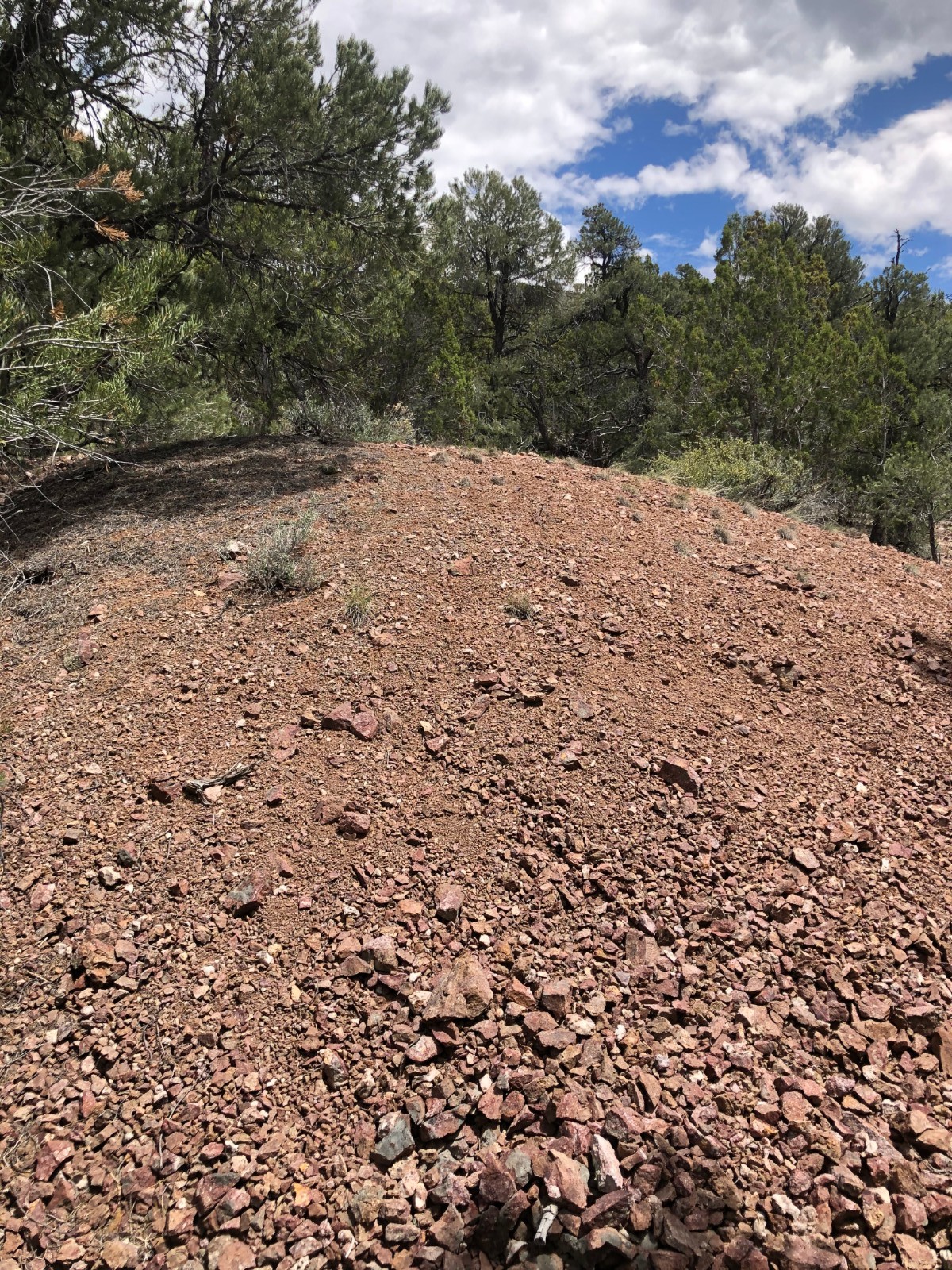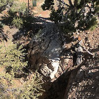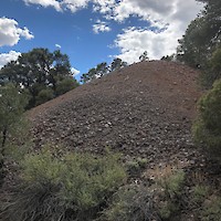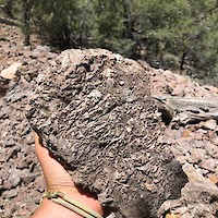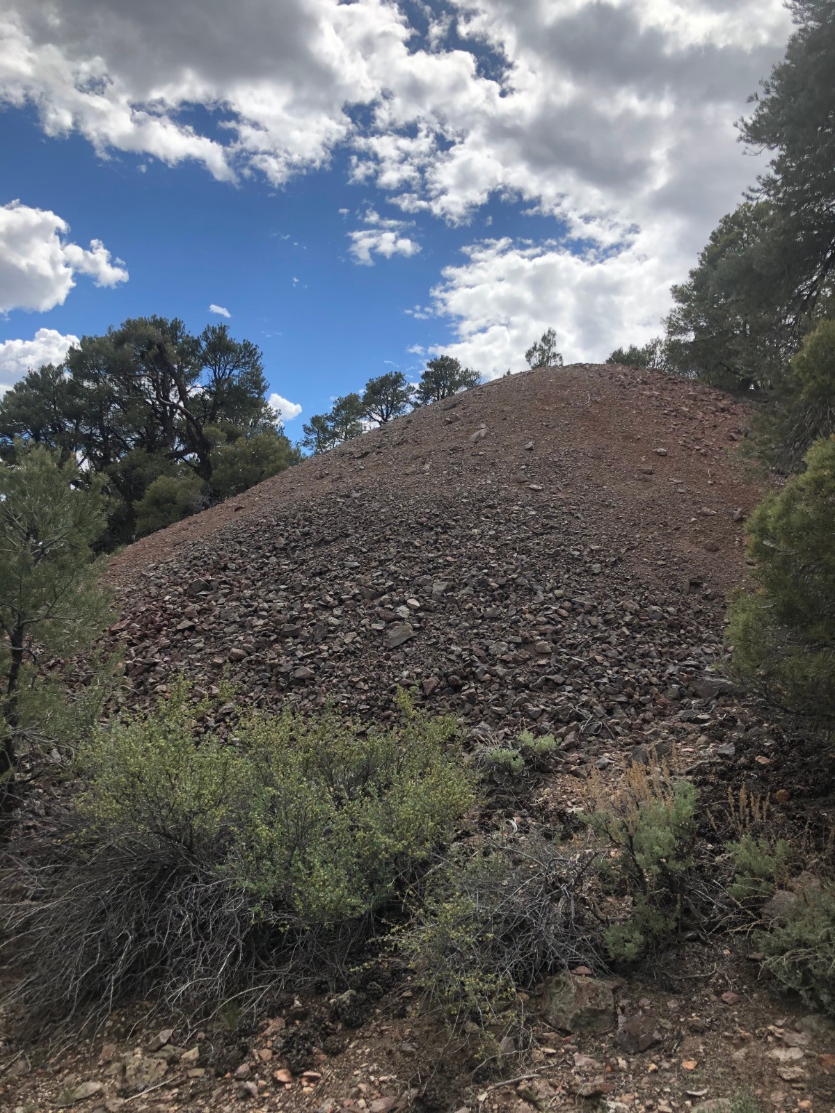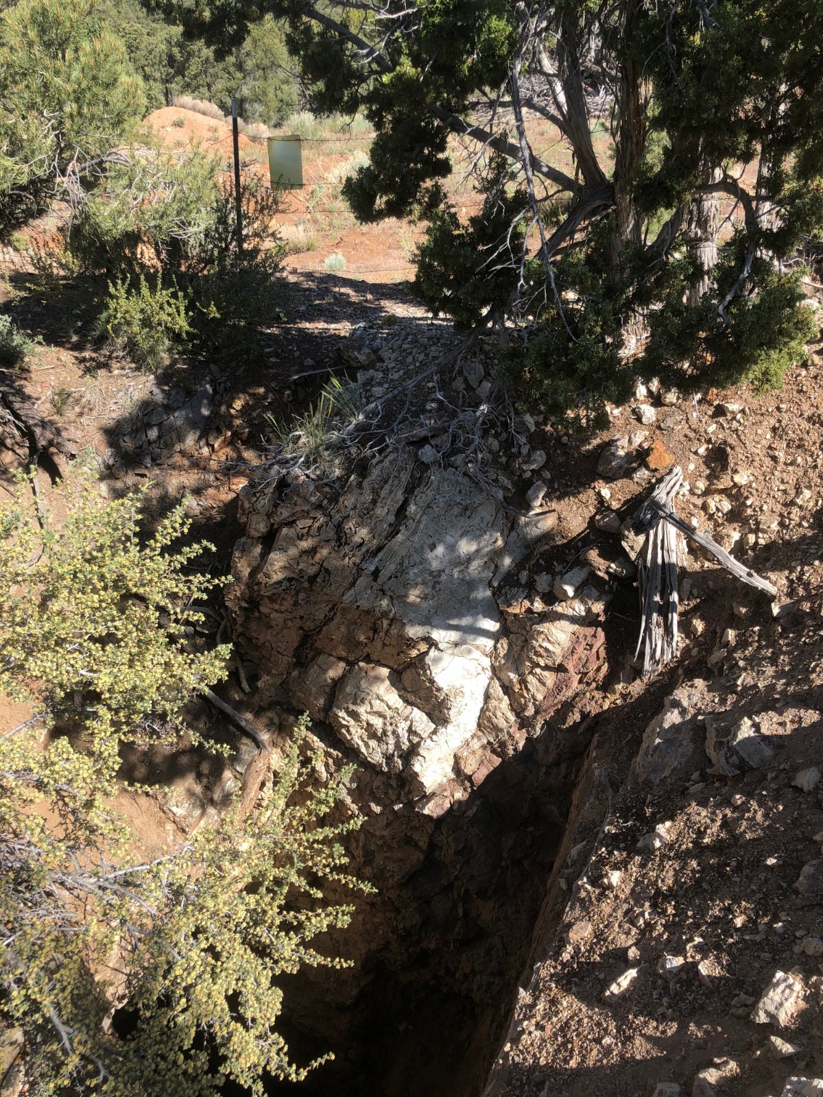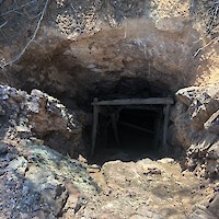 North of the Horseshoe, the north end adit contains approximately 305 meters of workings, with several historical shafts, pits and tunnels to exploit banded quartz-calcite vein systems. The largest historical mine working is a caved tunnel displaying a large dump containing large vein fragments. The Horseshoe and Homestake historical mines were high-grade underground mines that exploited a banded quartz-calcite vein up to 7.5 meters thick. Both these mines are on the same structure.