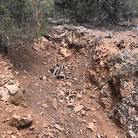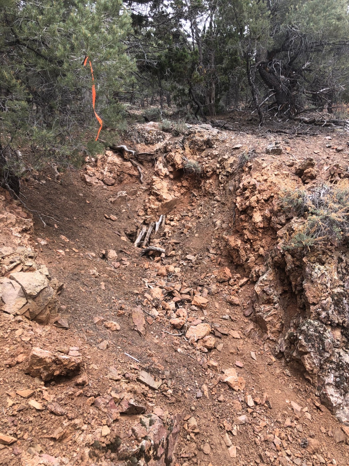 The Horseshoe historical mine, Homestake and Horseshoe Extension targets are all located along the same major north-south trending fault zone. This structural corridor extends over 7 kilometers in length and represents one of the largest and most dominant structures within the project area, and dominates the Horseshoe Extension target. This structure is well exposed on surface at the southern end, where the Horseshoe historical mine is located, and on the northern end, where the Homestake historical mine is situated. In between lies the Horseshoe Extension target where much of the area is covered by post-mineral gravels. There are numerous historical mine workings scattered along the 750 metre Horseshoe Extension strike-length with several shafts and tunnels showing mineralized material on the dumps.