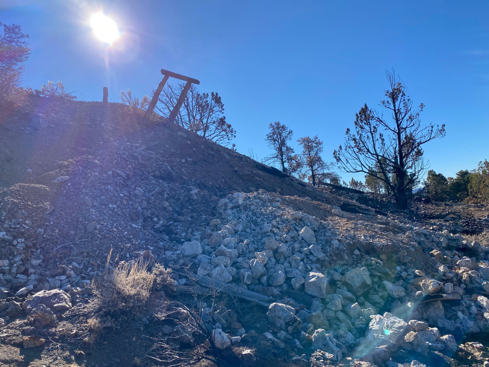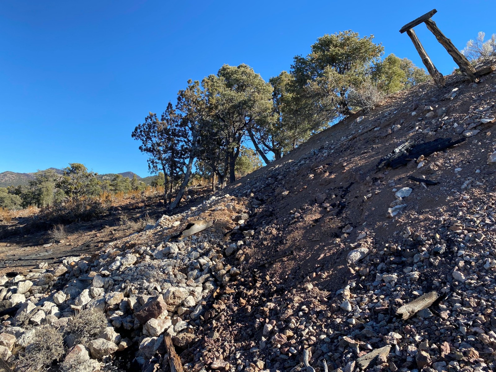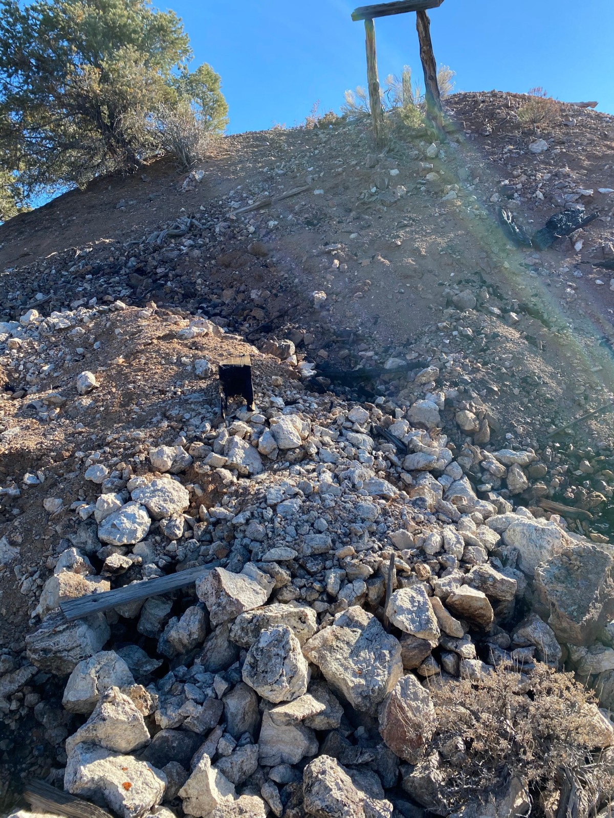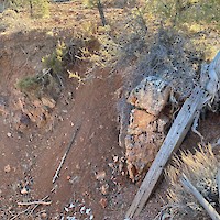 The historical Iris underground mine produced high-grade gold from one shaft estimated to be roughly 180 meters deep, two adits and several pits and trenches. Samples from old stockpiles of ore return gold grades of 38.09 g/t.