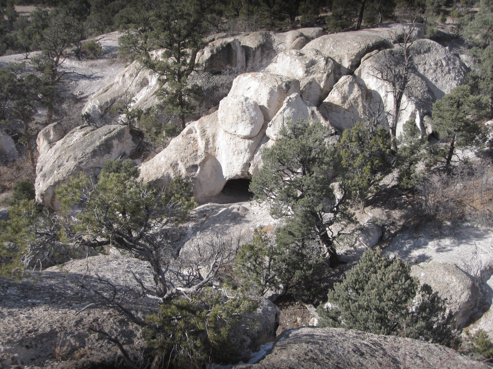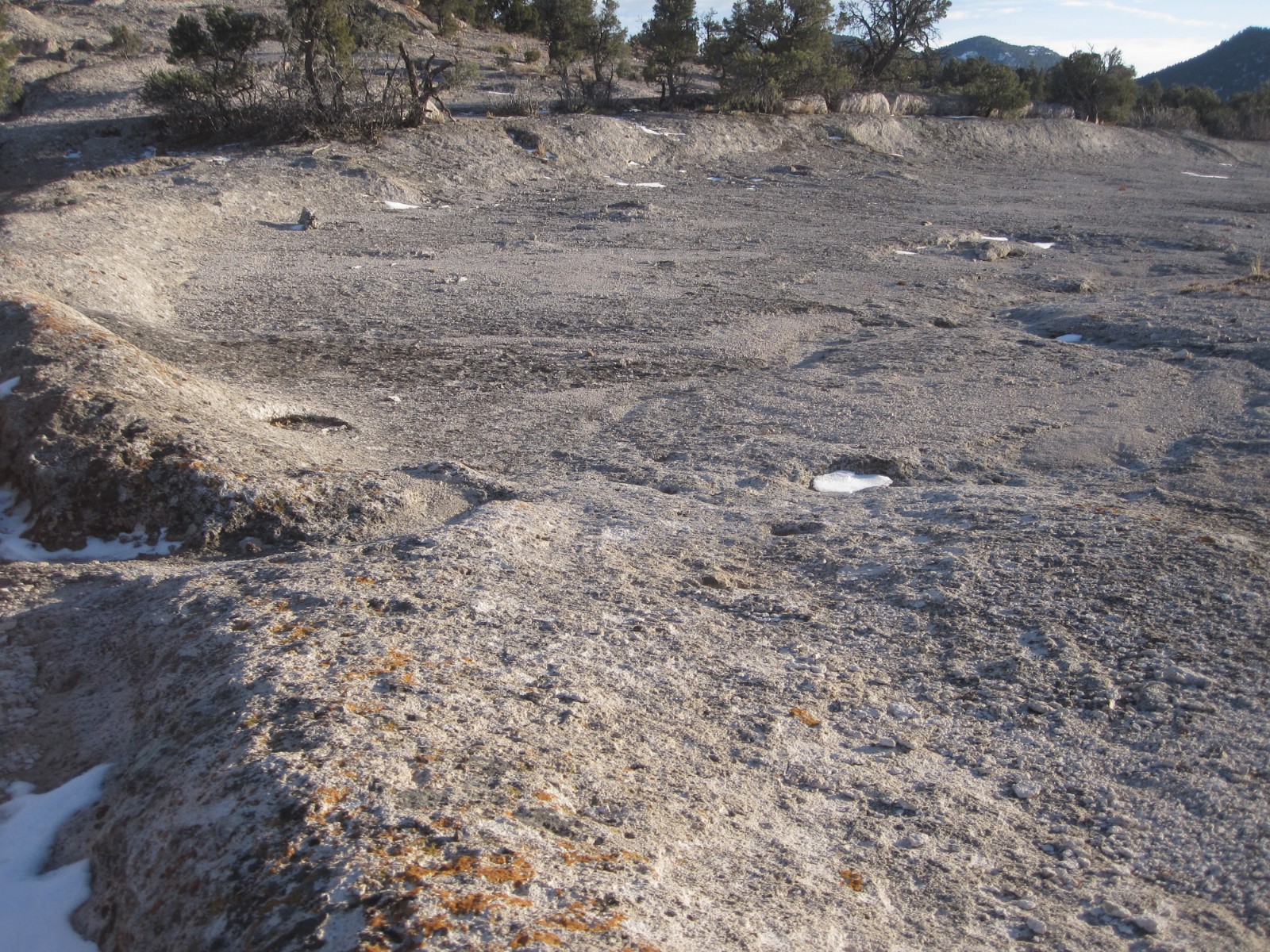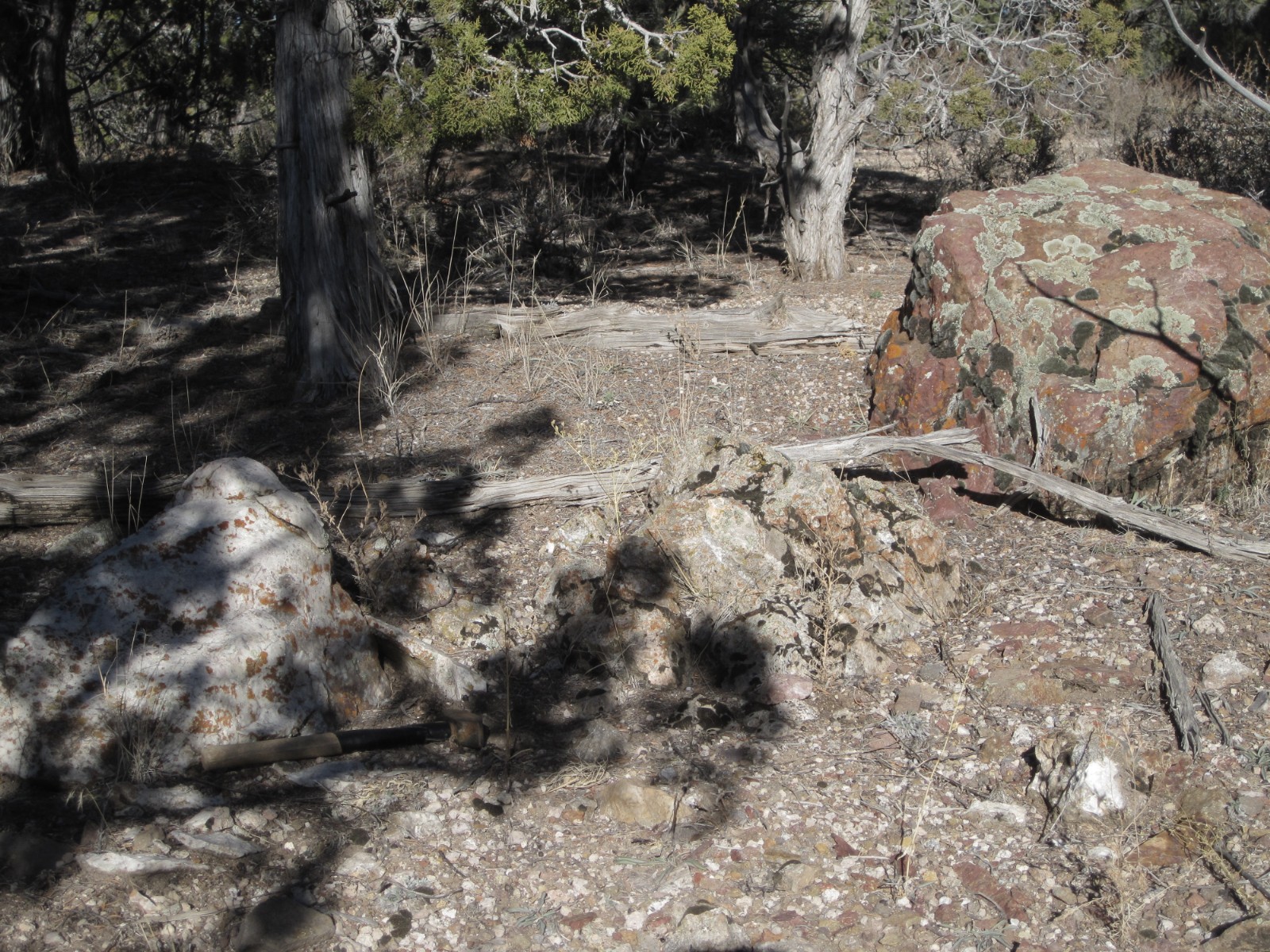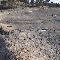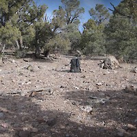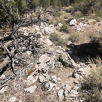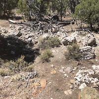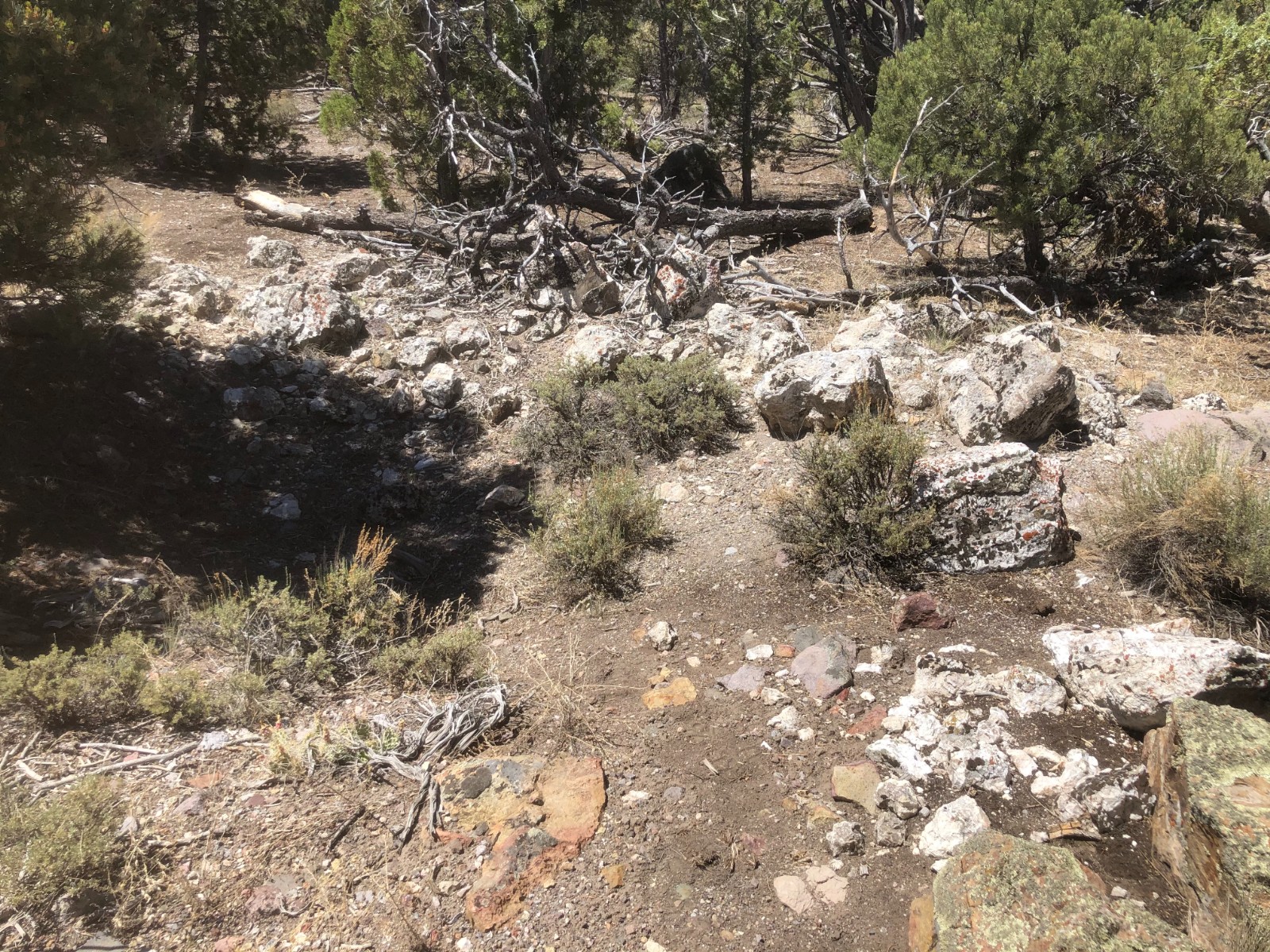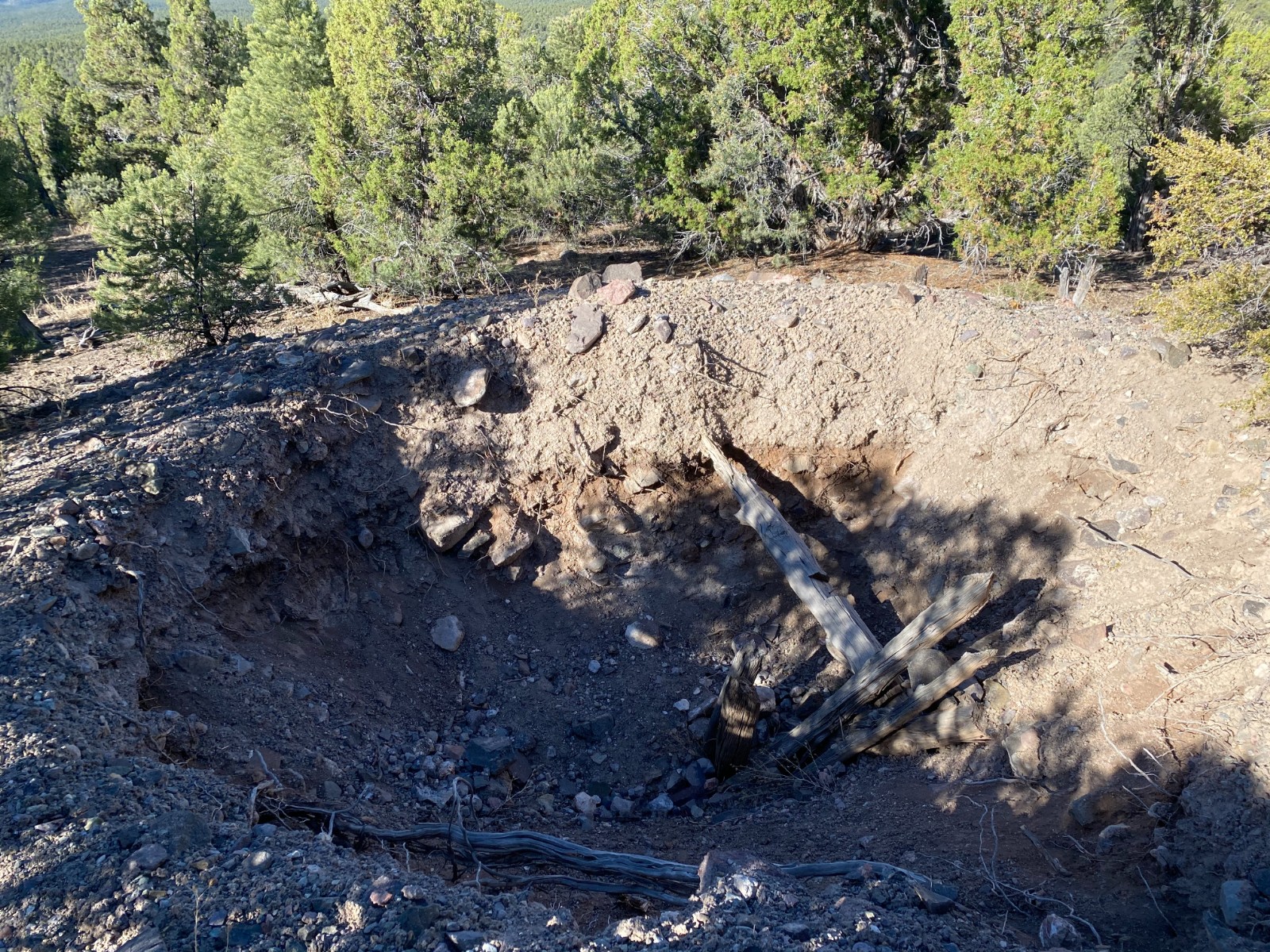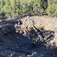 One deep shaft is located along the southern edge of the target and several small historic prospect pits are scattered over the area.