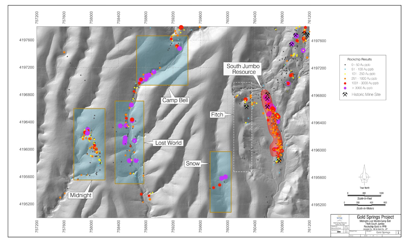 The Camp Bell target is located immediately north of the Lost World target along the Gold Springs Wash on the Nevada side of the Gold Springs property.