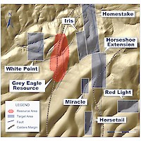 The Horsetail target is associated with the same resistivity high anomaly as the historical Horseshoe mine, as identified in the airborne ZTEM geophysical survey (see maps below).