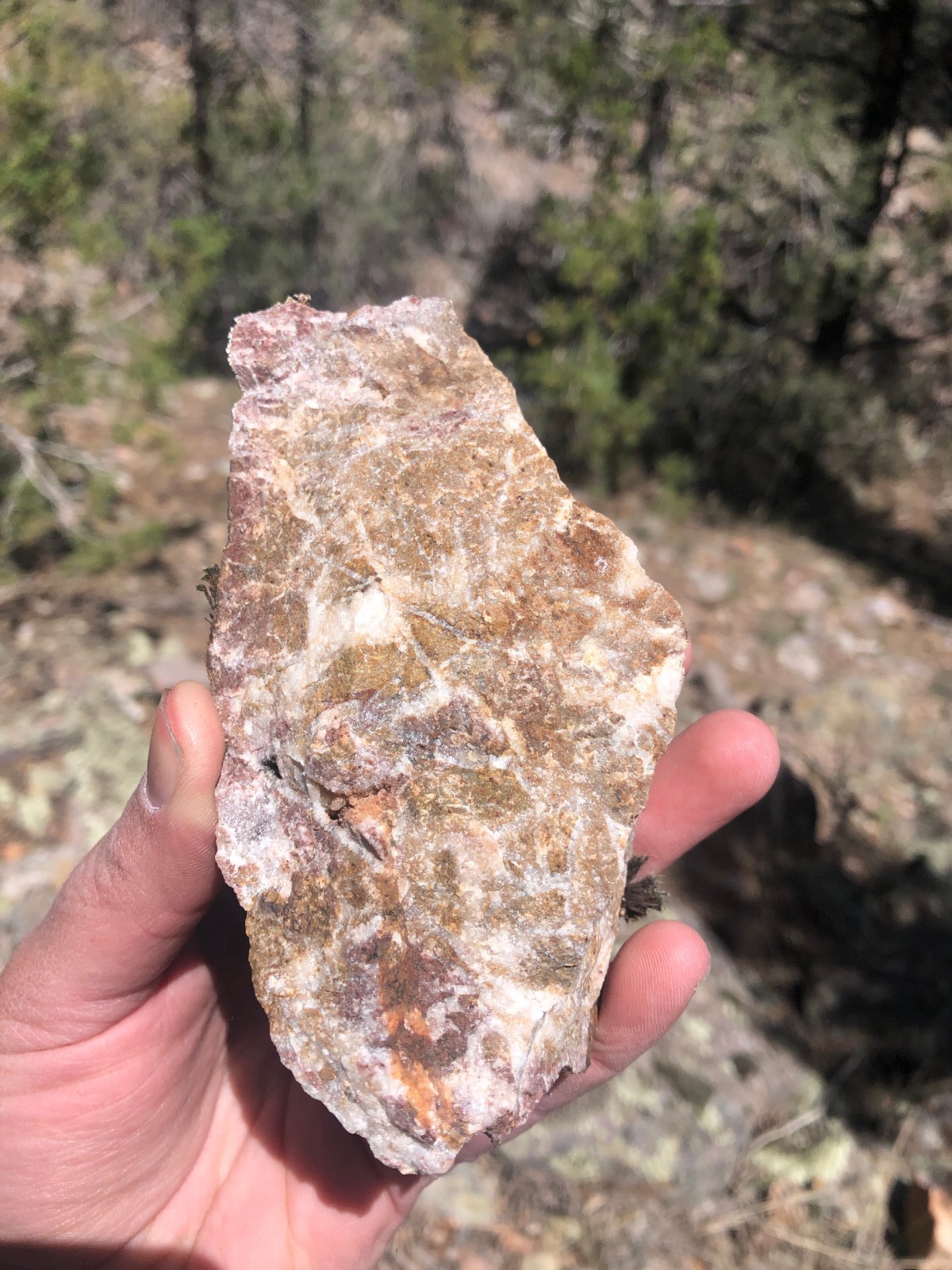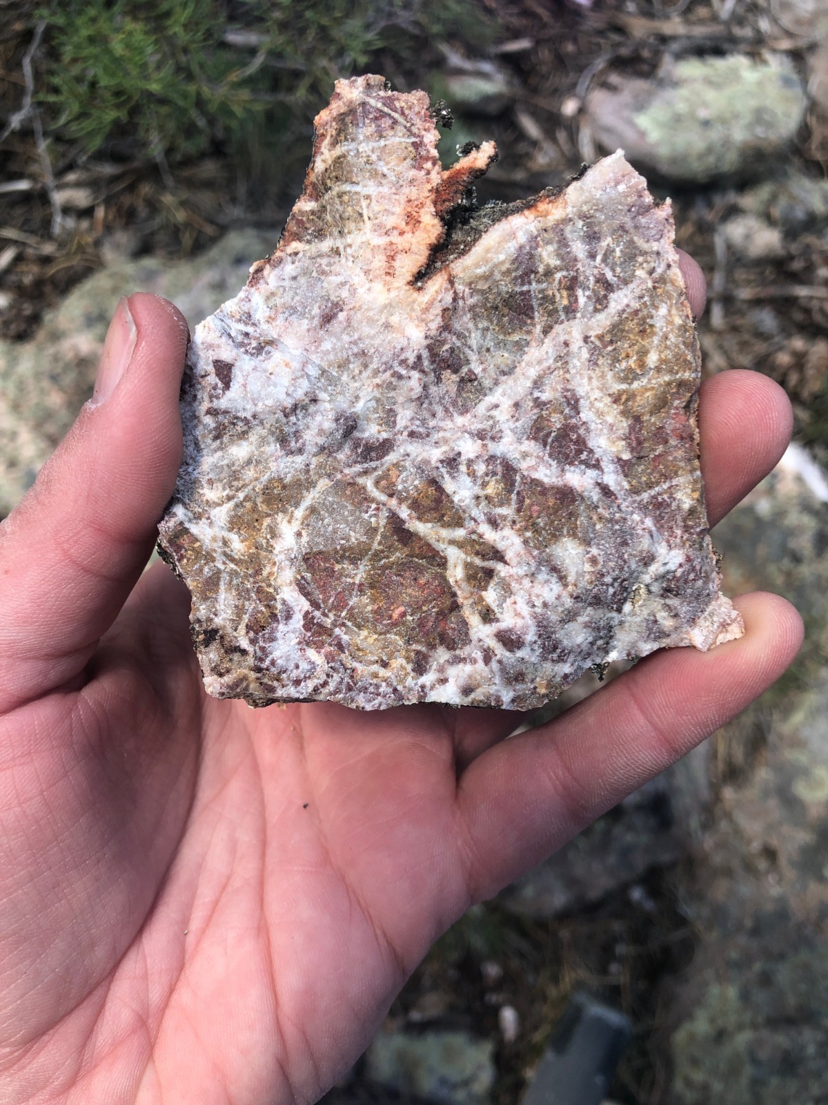 Silicified rhyolite with stockwork veins and breccia |
