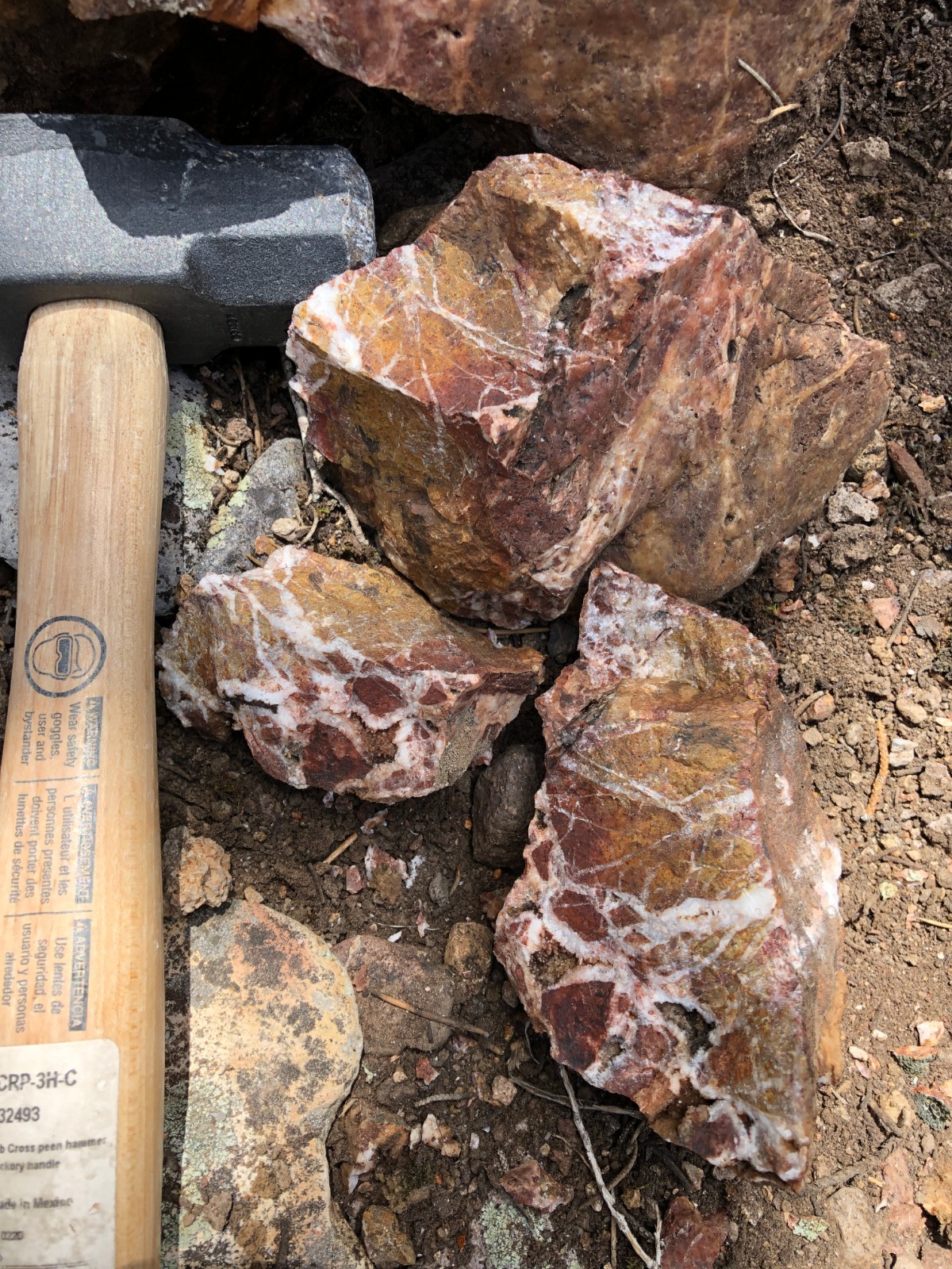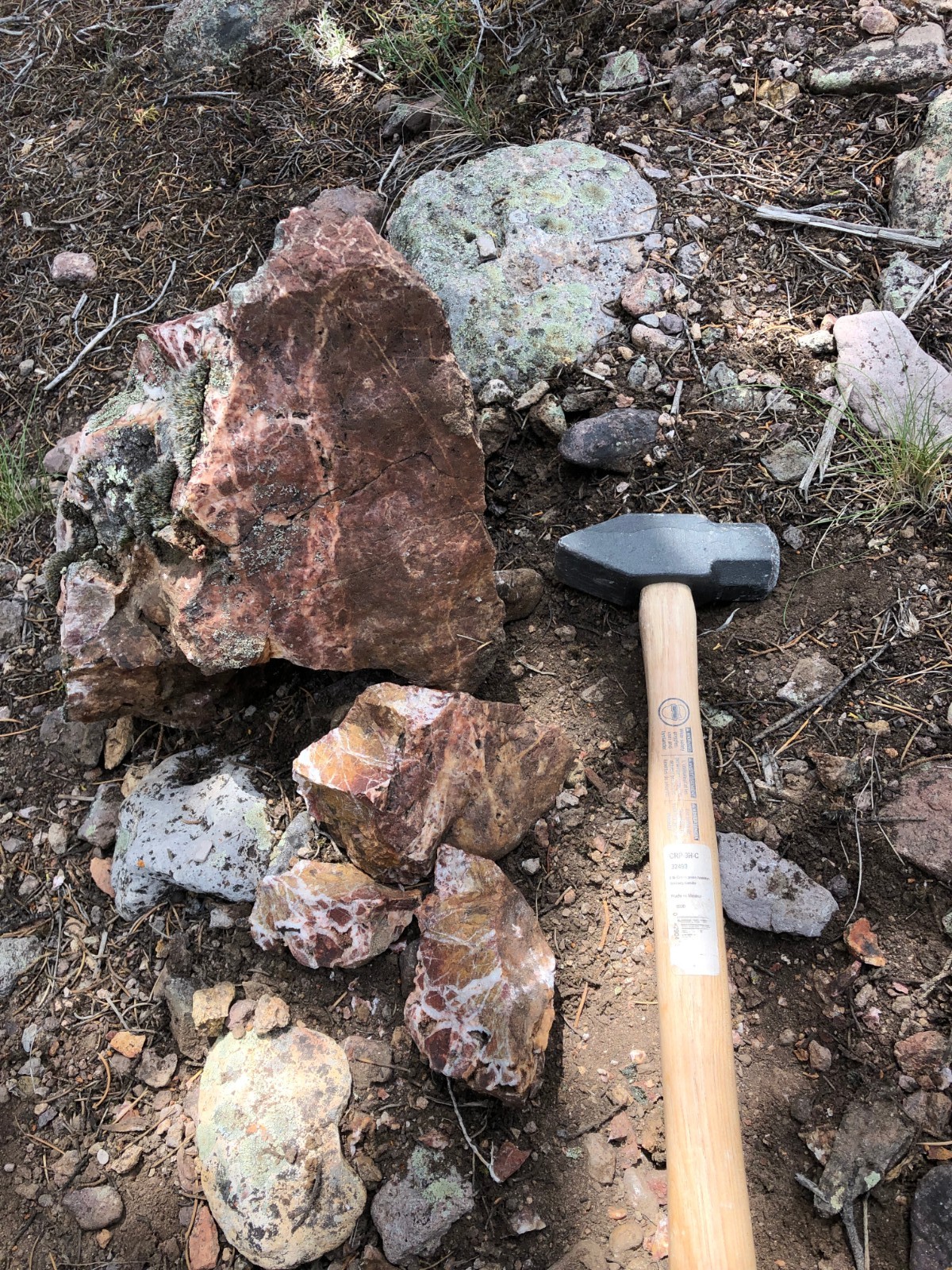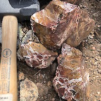 | 225221 | GRC | Float boulder | Lost World | Hydrothermal breccia with white quartz cement | 0.3 | 1.3 |