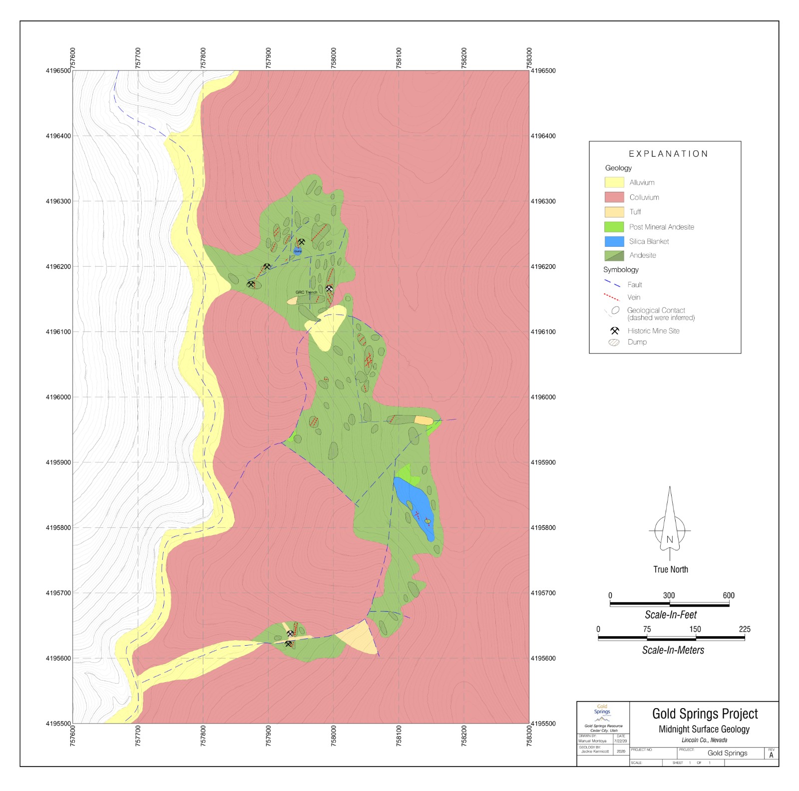 In 2020 GRC completed a detailed mapping program with associated surface sampling. Gold results from this work greater than 0.25 g/t Au (cutoff grade of the existing resources at Gold Springs) are listed below followed by past sampling efforts of the Company.