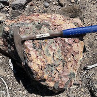 Mineralized material in float include, stockwork veining in andesite, banded and bladed quartz-calcite veins, and silicified hydrothermal breccias. Vein samples returned assays as high as 2.77 g/t Au and 20.8 g/t silver, with hydrothermal breccia grading 0.44 g/t Au and 35.7 g/t silver.