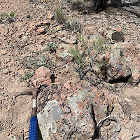 The Ridge target is located 1.5 km west of the White Point target along the Deer Lodge canyon structural zone. The deer Lodge canyon marks the northwest boundary of the Gold Springs Caldera, a splay of which hosts the Grey Eagle resource. Much of the Ridge target is covered with post-mineral colluvium but examining the limited outcrops, historic workings, and mineralization found in float has provided evidence of an extensive epithermal gold system below the shallow cover. Mineralized float is found over a 1.7 x 1.1 kilometer area signifying the potential size of the Ridge target. In historical workings near the caldera margin there are outcropping explosions breccias typically found at high levels within epithermal gold systems indicating there may be a fully preserved system hosted along the caldera boundary