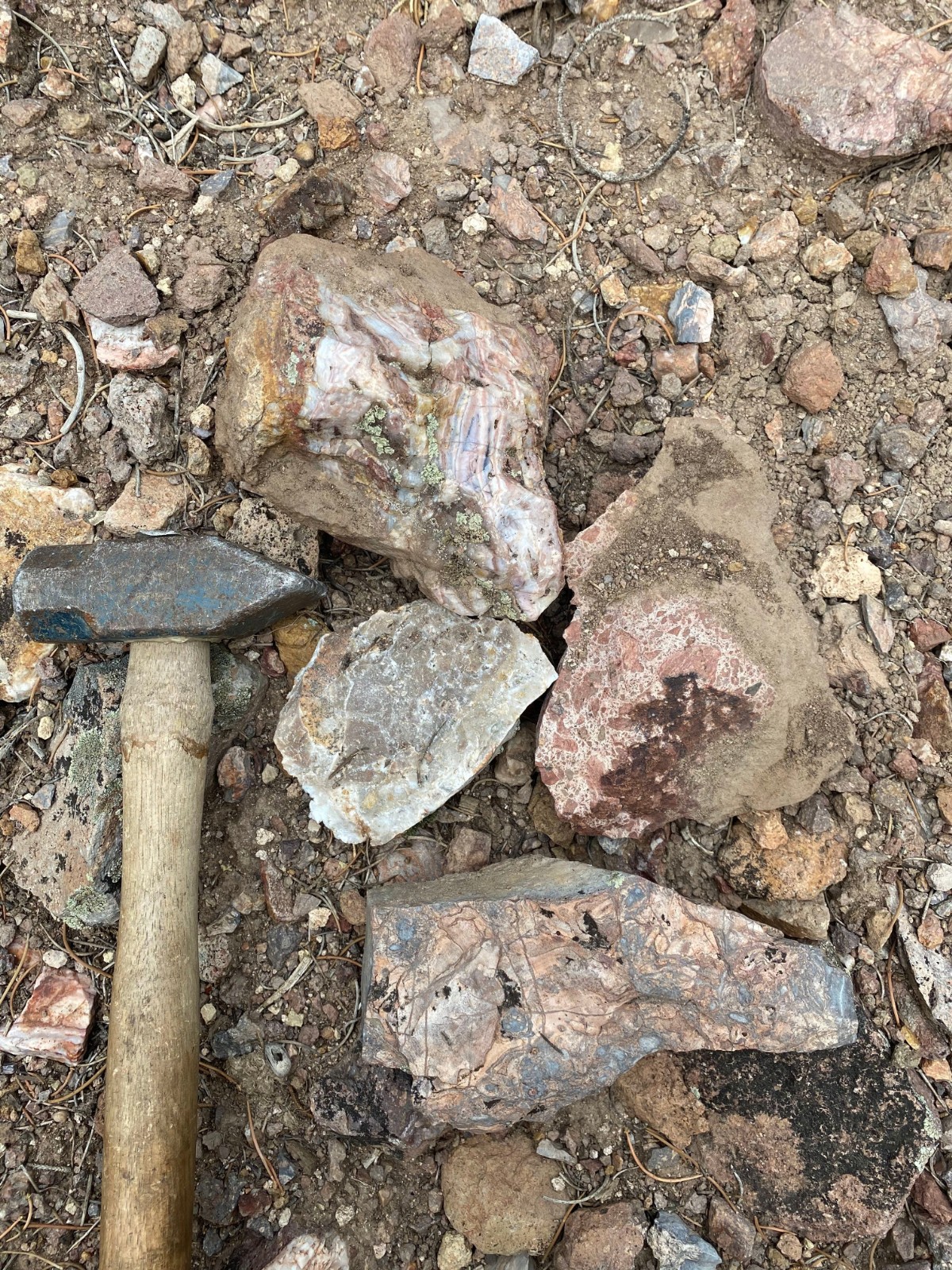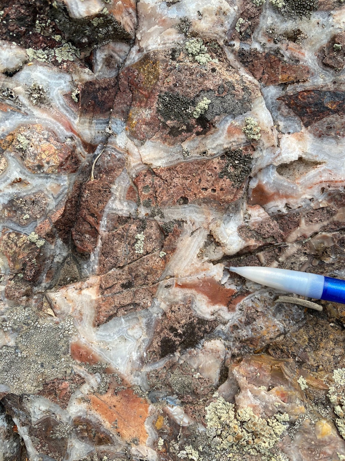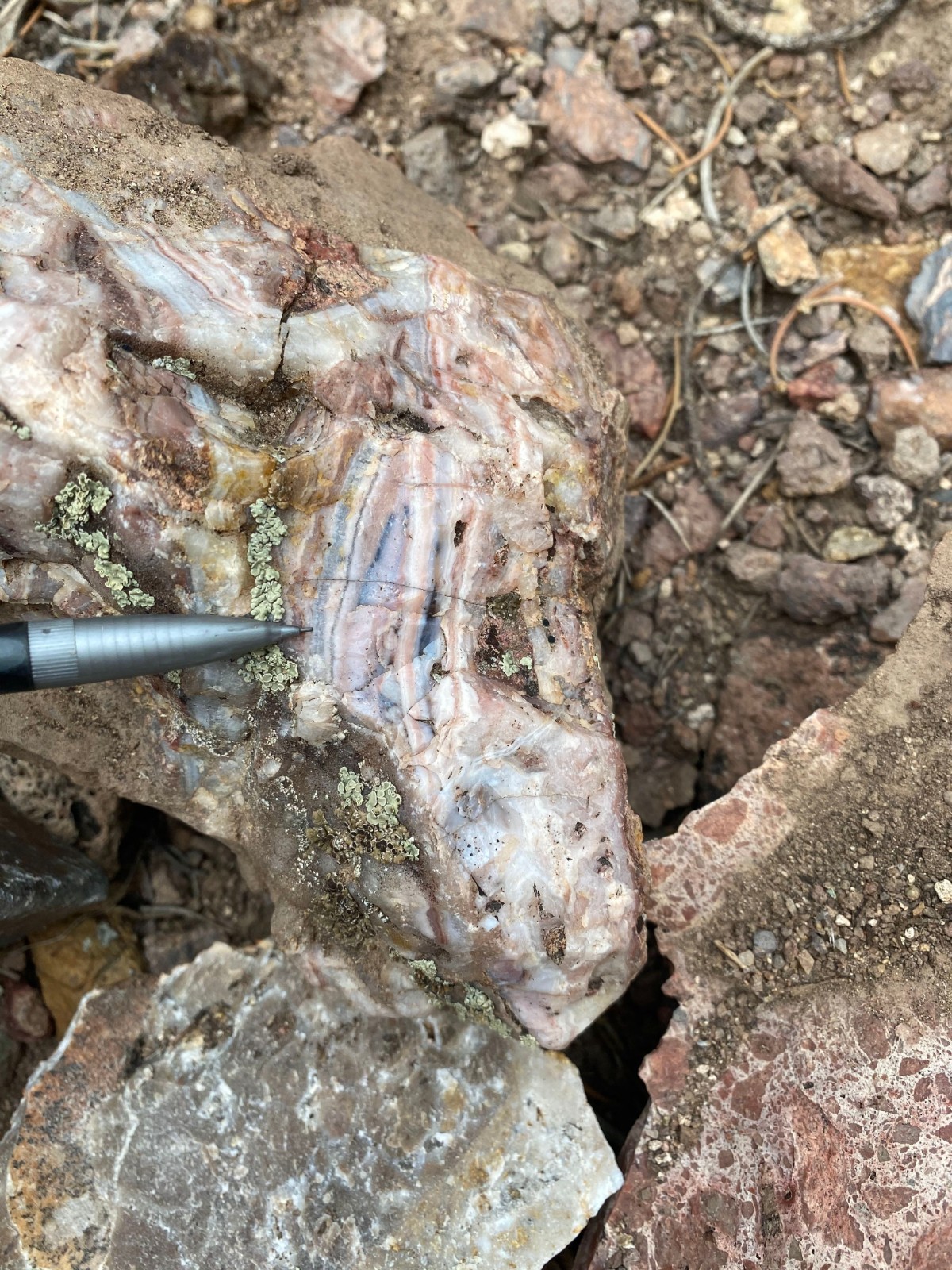 Colloform banded quartz vein boulders |