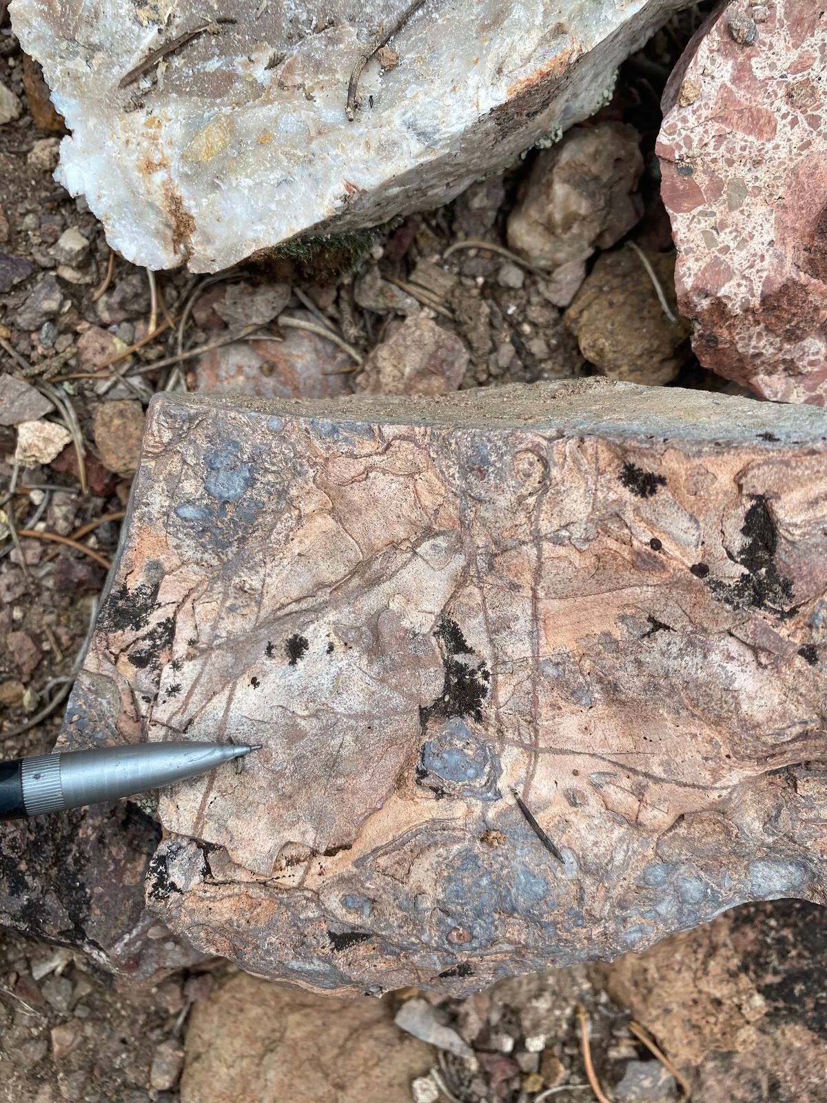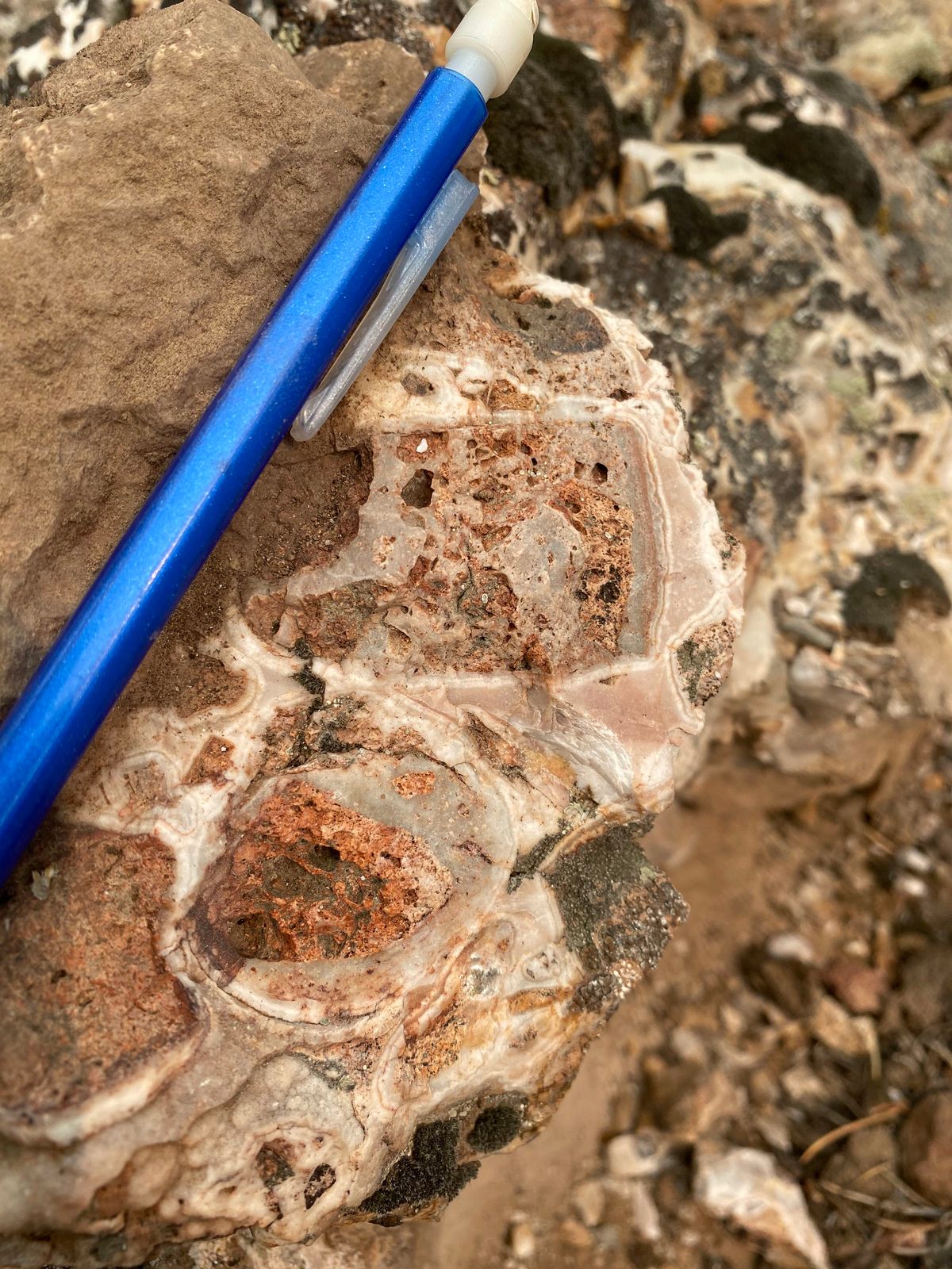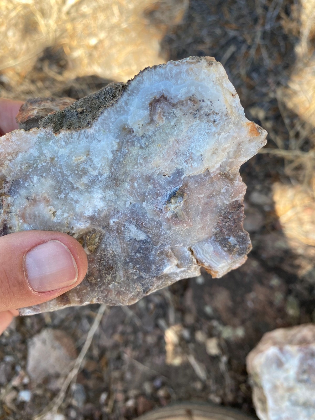 Colloform banded quartz vein boulders |