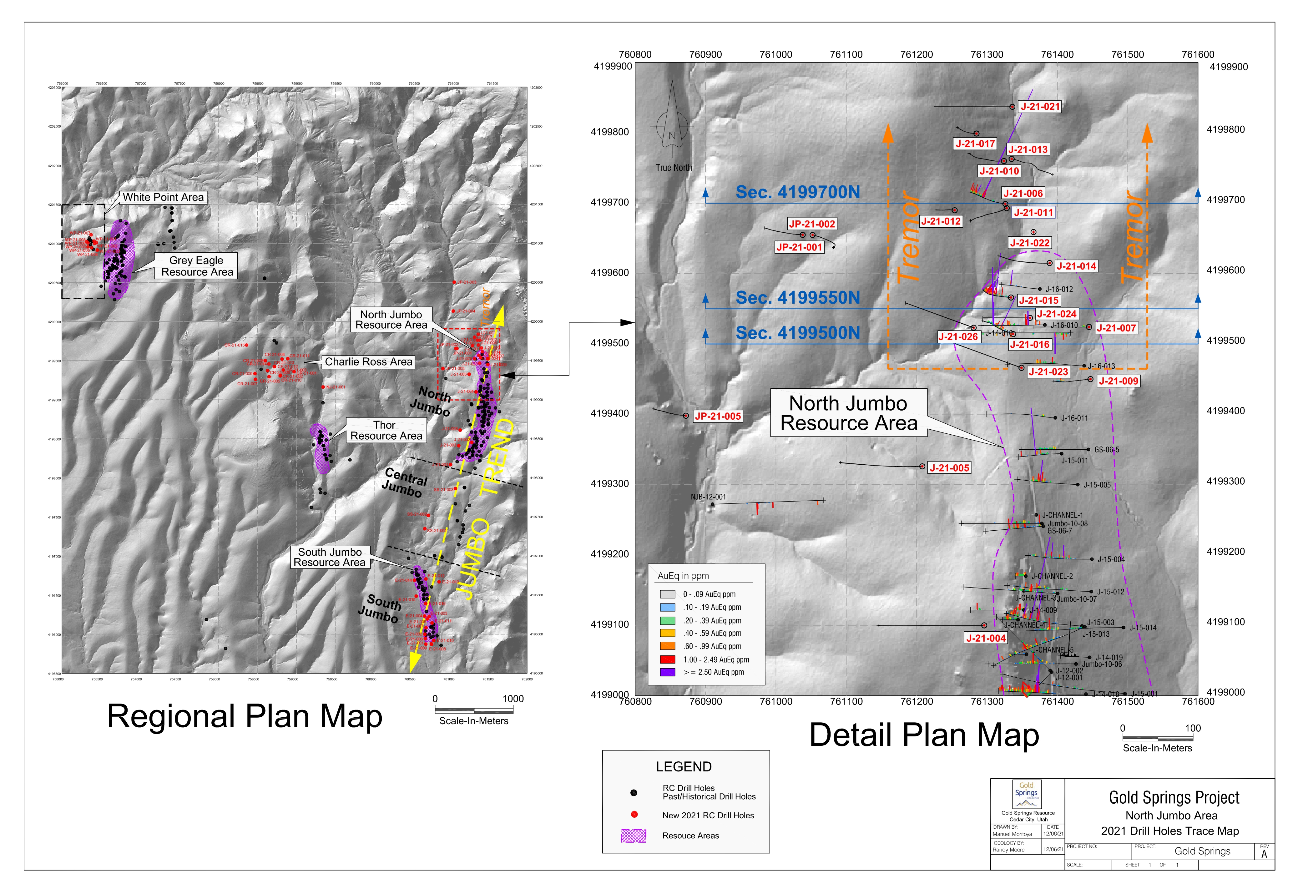 GRC has received assay results from 3 holes and is waiting for assays on the remaining 15 holes at “Tremor”. Once those assays are received, the Company plans to drill additional holes at “Tremor”