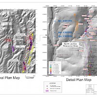 “Tremor” is located on the northern extension of the Jumbo Trend. This trend follows a large north-south structural zone which also appears to control the emplacement of the intrusive body hosting the “Tremor” gold system. Drilling has demonstrated east-west structural offsets to the intrusive measured in 10s of meters, but additional drilling will be required to clearly understand the extent and magnitude of these offsets.
