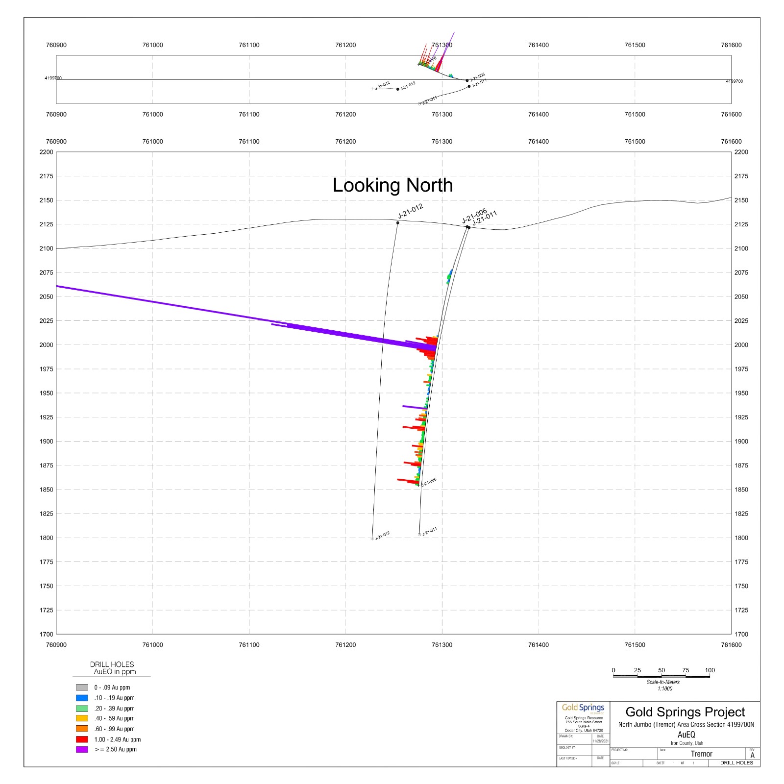 Unlike the current resources at Gold Springs the “Tremor” target is an Intrusive-Related Gold System situated along the north extension of the Jumbo Trend in Utah where a strong CSAMT high resistivity anomaly extends for 1,200 meters.